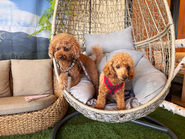 入り口の写真コーナーでゆりかご椅子に乗せてみる。
